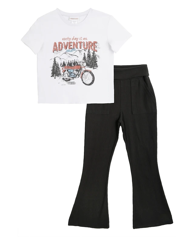 adidas Toddler and Little Girls 2-Piece Long-Sleeve Graphic T-Shirt & Flare Pants Set