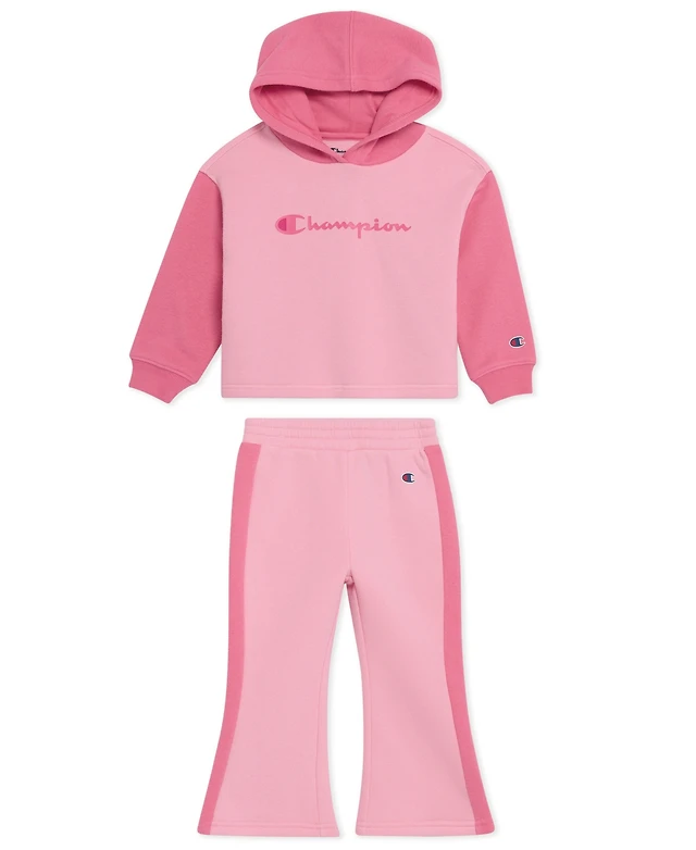 adidas Toddler and Little Girls 2-Piece Crewneck Fleece Pull-On Sweatshirt and Ribbed Flare Pant Set