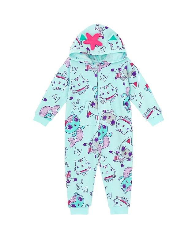 Dreamworks Gabby's Dollhouse Toddler Girls Pandy Paws Cakey Cat MerCat Fleece Zip Up Coverall to