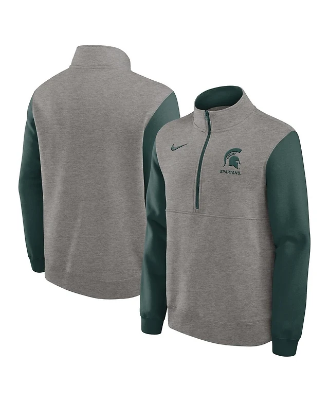 Nike Men's Heather Gray/Green Michigan State Spartans Club Fleece Half-Zip Pullover Sweatshirt