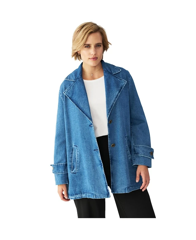 Dkny Women's Denim Double Breasted A-Line Coat