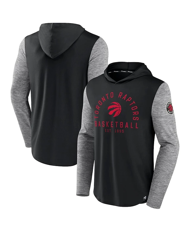 Men's Fanatics Black, Heathered Charcoal Toronto Raptors Deep Rotation Performance Pullover Hoodie