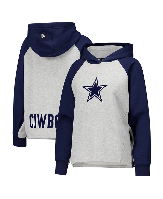 Dkny Women's Gray/College Navy Seattle Seahawks Joy Cropped Raglan Pullover Hoodie