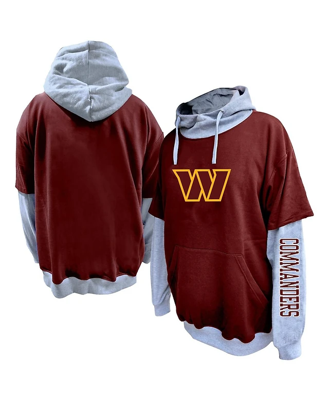 Profile Men's Burgundy/Heather Gray Washington Commanders Big Tall Twofer Pullover Hoodie