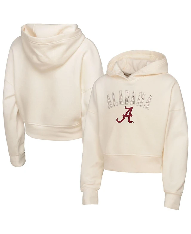 Outerstuff Big Girls Cream Alabama Crimson Tide Oversized Blitz Cropped Pullover Hoodie