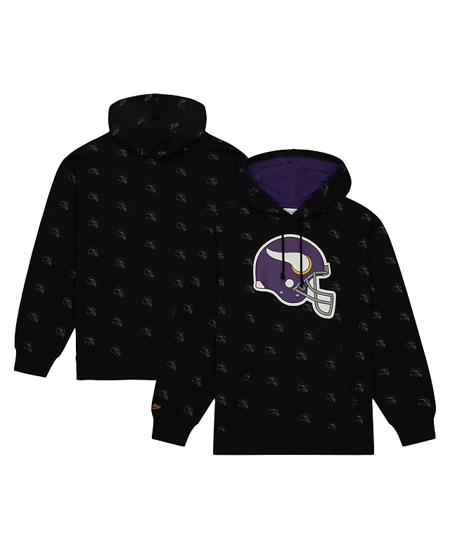 Men's Mitchell & Ness Black Minnesota Vikings Allover Print Fleece Pullover Hoodie