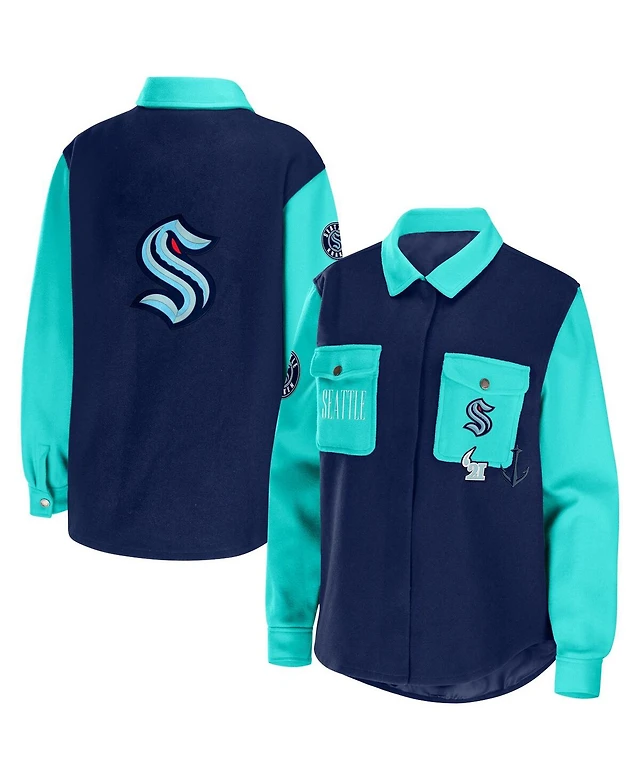 Women's Wear by Erin Andrews Deep Sea Blue, Light Blue Seattle Kraken Colorblock Button-Up Shirt Jacket