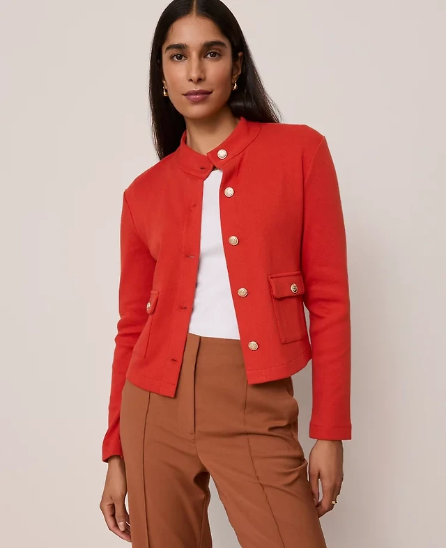 Ann Taylor Ribbed Sweater Jacket Iconic Red Women's