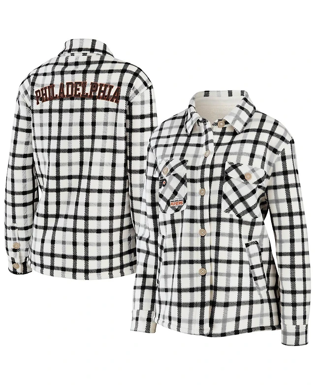 Women's Wear by Erin Andrews Oatmeal New Jersey Devils Plaid Button-Up Shirt Jacket