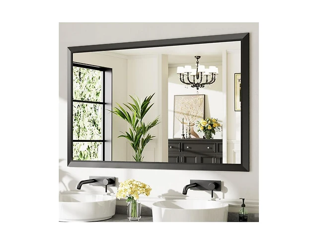 Amorho Bathroom Mirror, 36" x 24" Inch Thick Metal Framed Wall Mirrors for Over Sink, Bedroom, Living Room, Entryway
