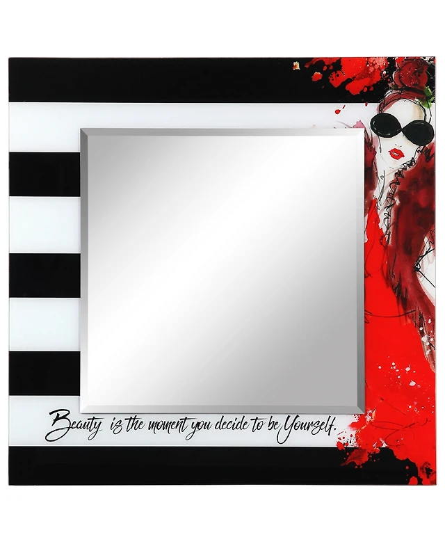 Empire Art Direct Fashion Square Beveled Wall Mirror on Free Floating Reverse Printed Tempered Art Glass, 36" x 36" x 0.4"