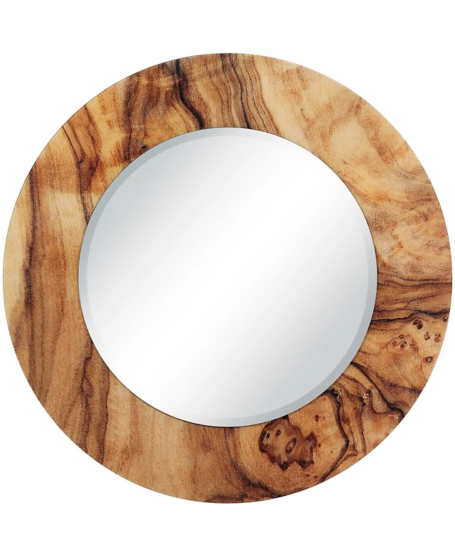 LuxenHome Natural Rubberwood Frame Round Wall Mirror