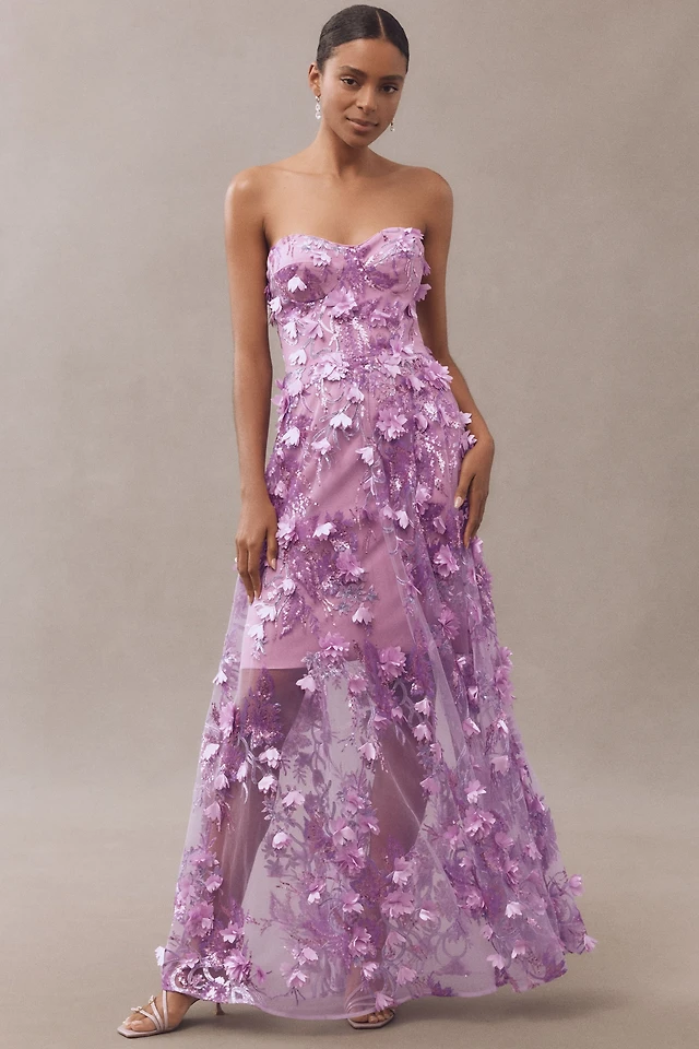 Dress The Population Melissa Strapless Sequin Floral Appliqué Maxi