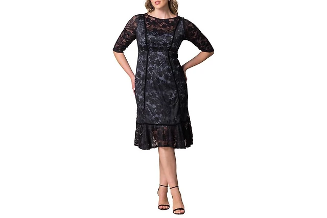 Kiyonna Plus Hampton Lace Cocktail Dress with Velvet Trim