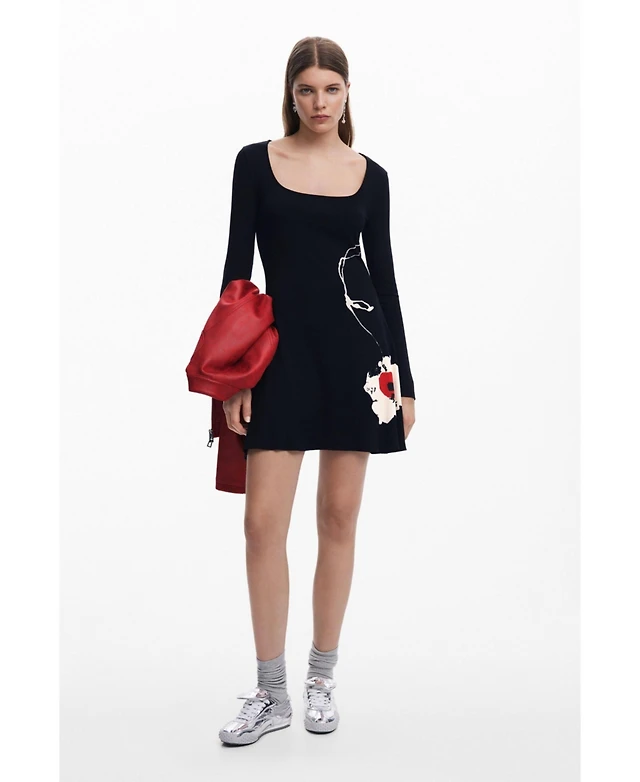 BHLDN Long-Sleeve High-Neck Floral A-Line Mini Dress