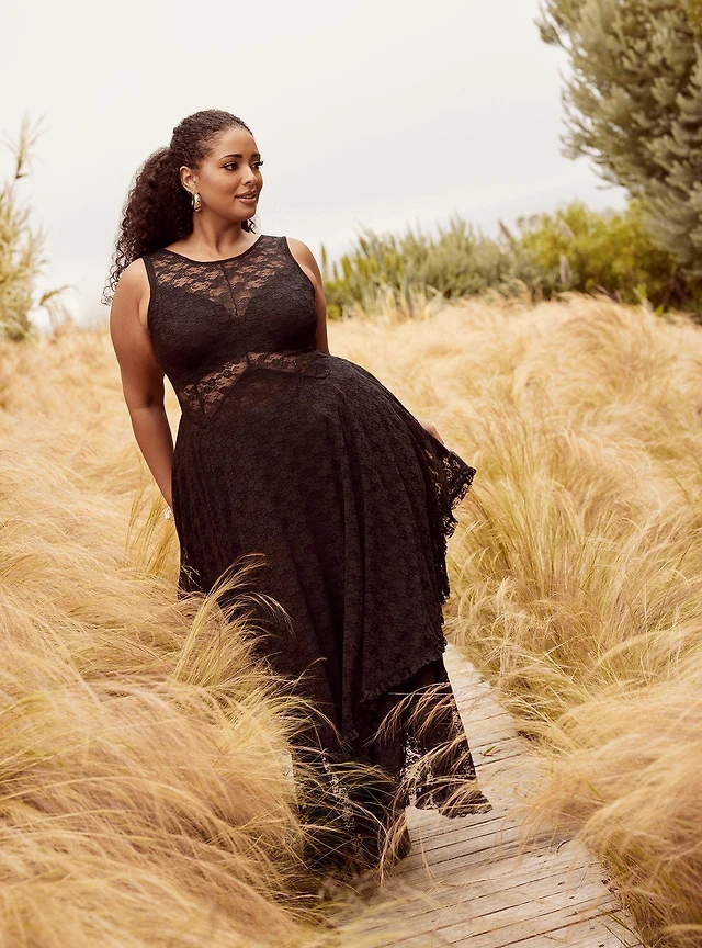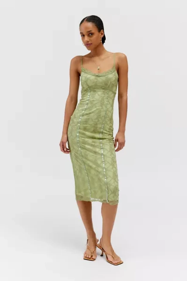 MIDI SATIN EFFECT LACE COMBINATION DRESS