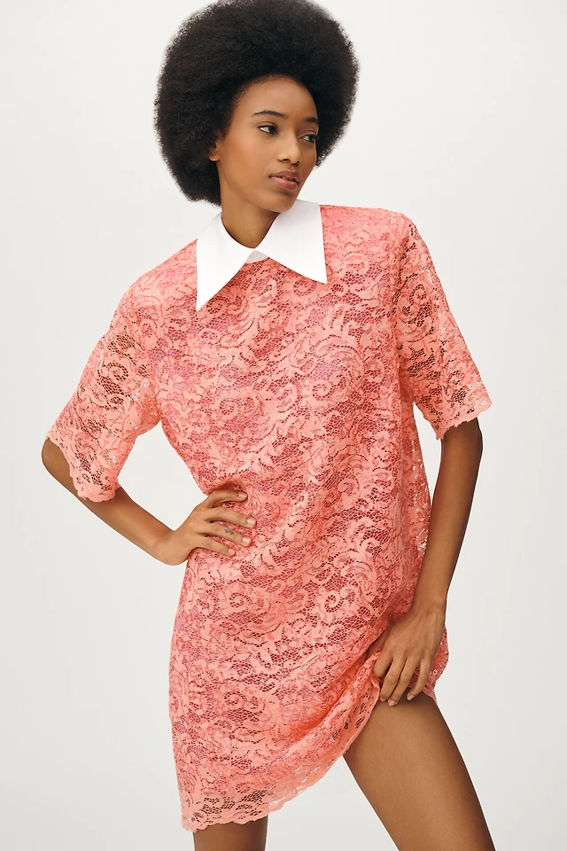 Reistor Women's Hemp Short Dress with Back Embroidered Lace Detail