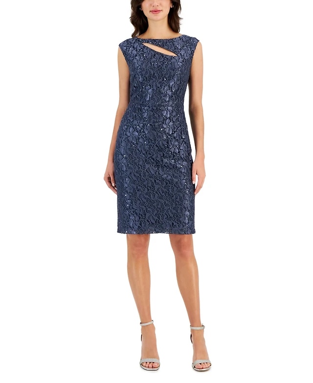 Jessica Howard Petite Soutache Floral Lace Off-the-shoulder Gown