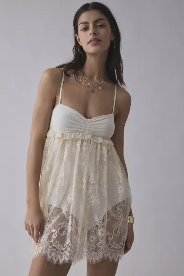 AFRM Aria Sheer Lace Babydoll Mini Dress