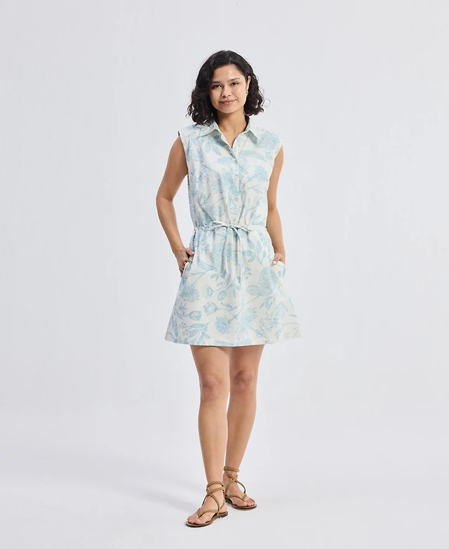 Reistor Women's Drawstring Shirt Dress Blue Florals