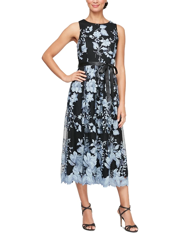 T Tahari Women's Floral-Embroidered Sweater Dress