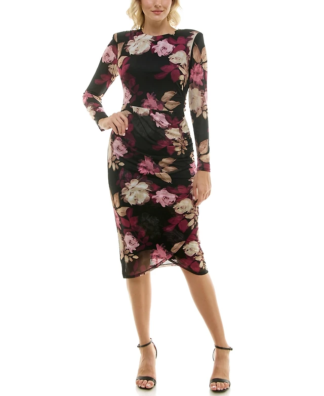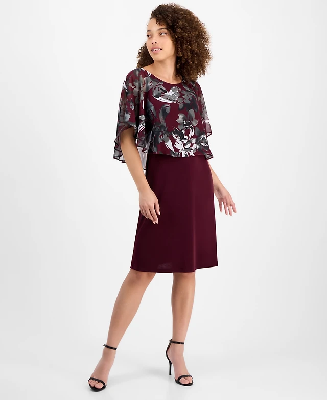 Women's Floral-Print Shift Dress with Ruffled Hem