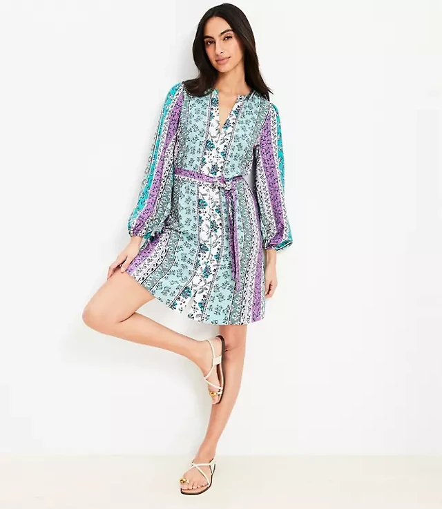Ann Taylor Floral Ruched Flare Dress Lilac Bud Women's