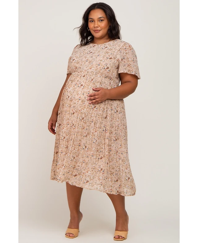 Pinkblush Cream Multi Ditsy Floral Smocked Maternity Midi Dress