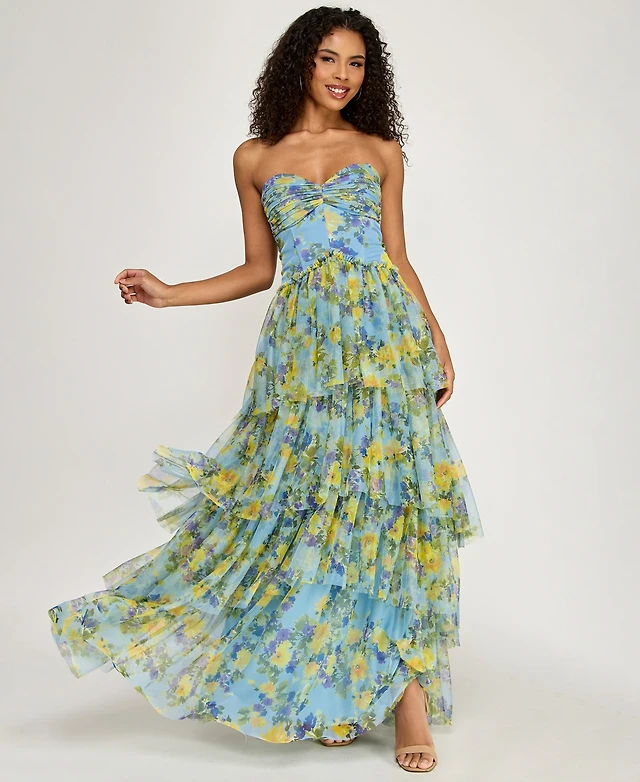 Yumi Blossom Print Lace Trim Maxi Dress