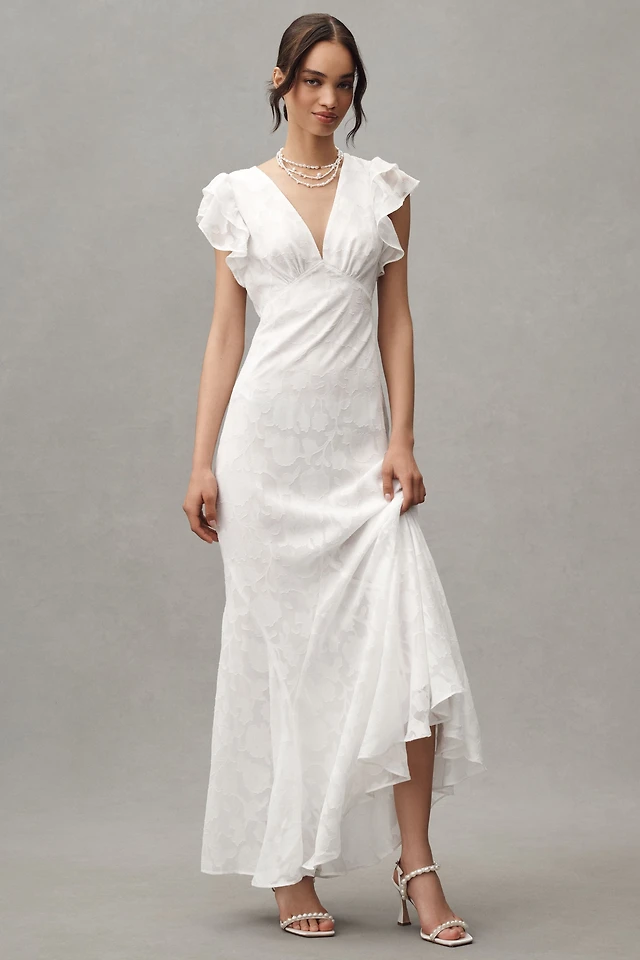 Miss Circle Women's Oberon White Cotton Eyelet Lace-Up Back Maxi Dress