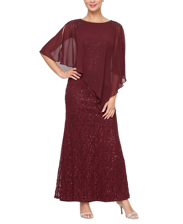 Sl Fashions Petite Round-Neck Sequin Lace Cape Dress