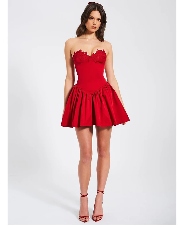 Miss Circle Women's Sacha Red Lace Drop Waist Corset Puffy Mini Dress