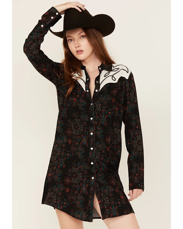 Shyanne Women's Hillside Floral Embroidered Long Sleeve Button-Down Mesh Midi Dress
