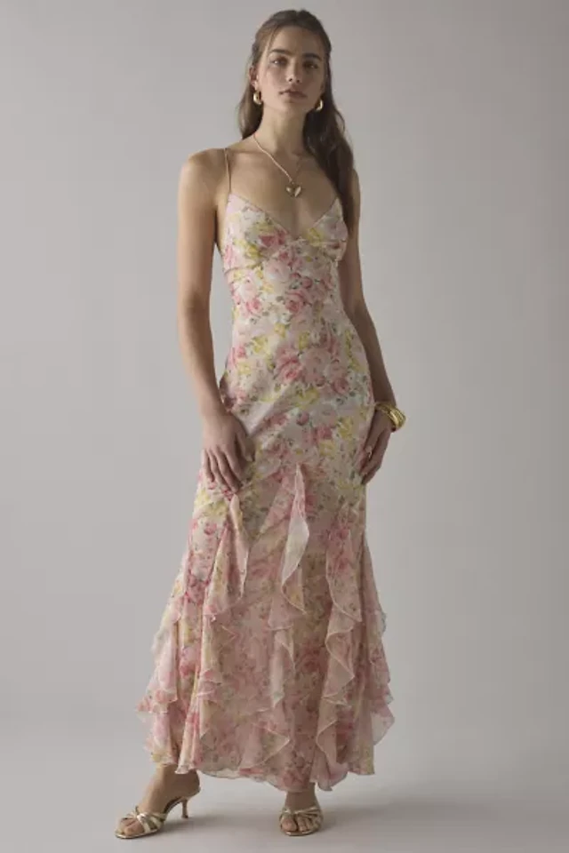 V. Chapman Lucetta Corset Tiered Brocade Maxi Dress