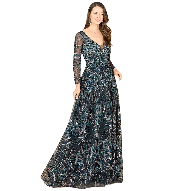 Xscape Plus Lace-Shoulder Gown