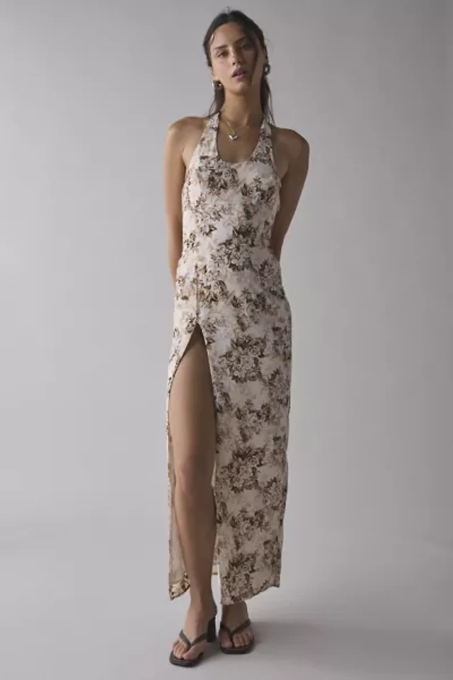 Stretch-Crepe Flutter-Sleeve Maxi Dress