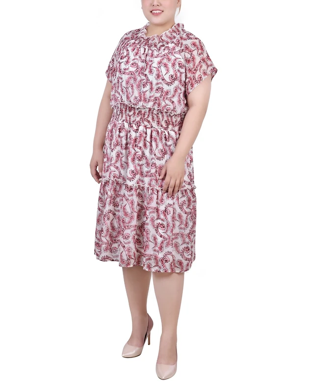 Ny Collection Petite Short Sleeve Smocked Waist Dress