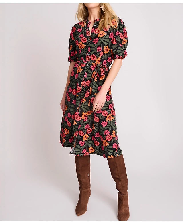 Ann Taylor Floral V-Neck Shirtdress Size 6 White Women's