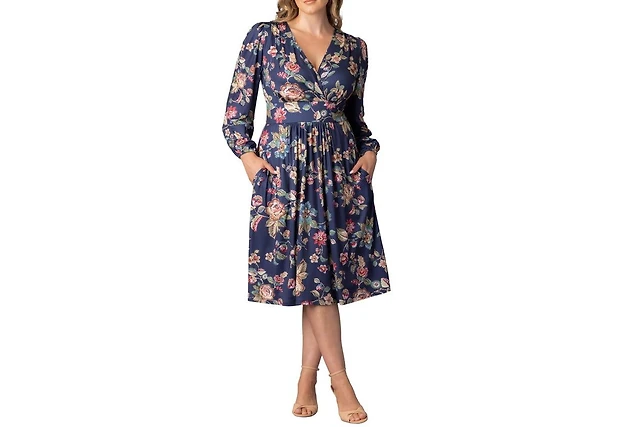 Kiyonna Plus Melanie Long Sleeve Mesh Midi Cocktail Dress