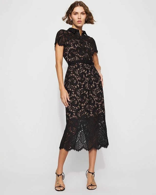Tea Length Woven Jacquard Lace Trim Cami Dress