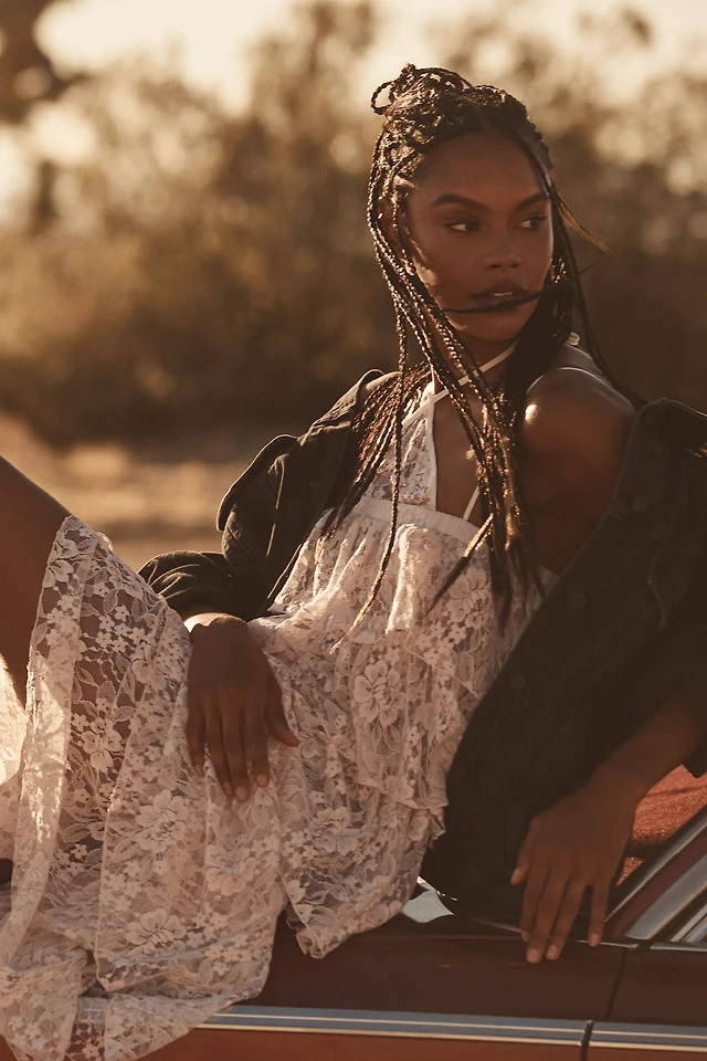 Modal Soft & Lace Trim Straight-Neck Slip Dress