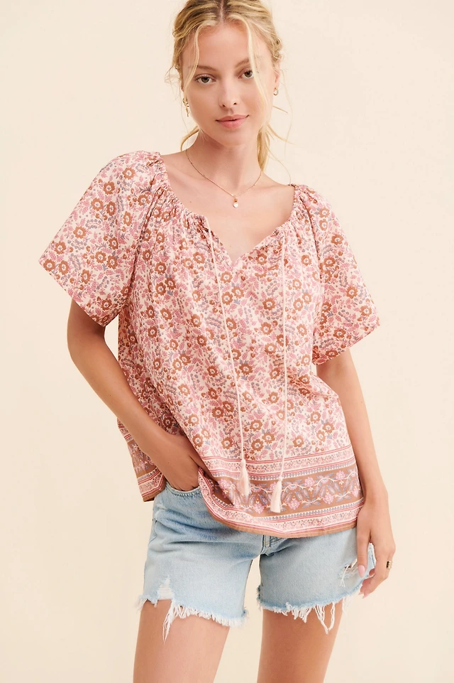 EMBROIDERED FLORAL COMBINATION BLOUSE