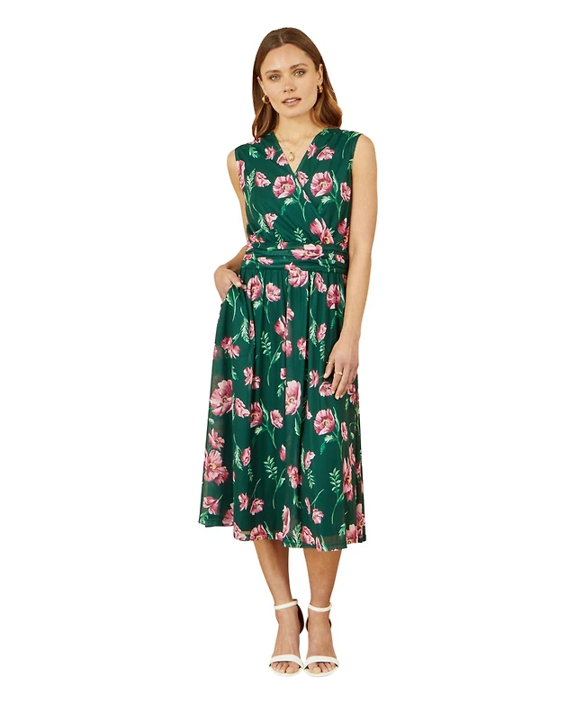 Yumi Women's Floral Pleated Midi Wrap Dress