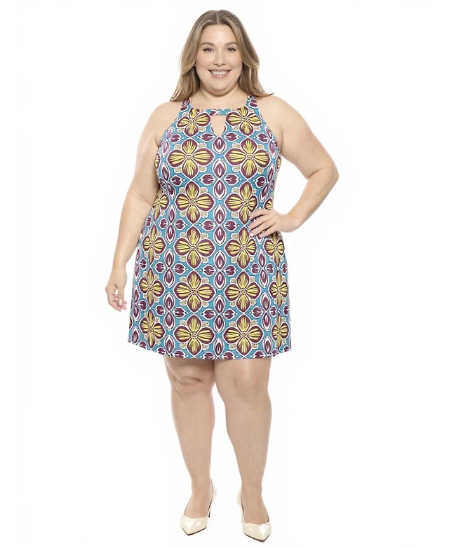 24seven Comfort Apparel Women's Floral Knee Length Paisley Sleeveless Keyhole Dress