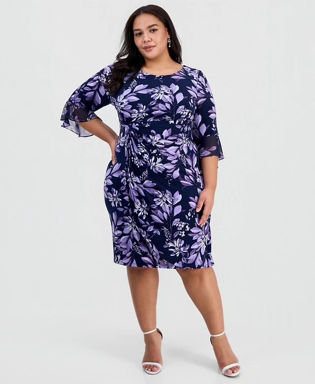 Connected Women's Floral Mesh-Sleeve Side-Tie Wrap Dress