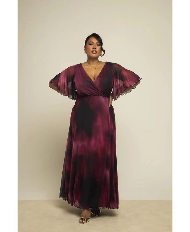 Bebe Women's Long Sleeve Ruffle Neck Maxi Dress