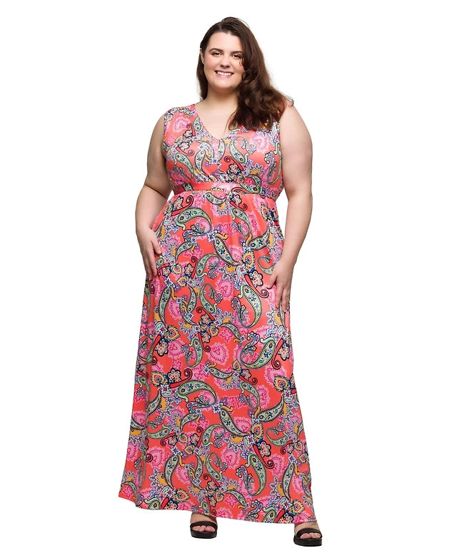 1.state Women's Printed V-Neck Sleeveless Maxi Dress