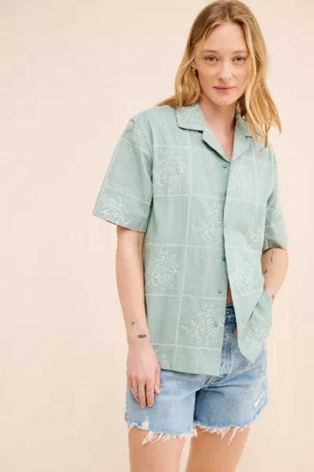 Maude Club Atlas Floral Applique Oversized Button-Down Shirt