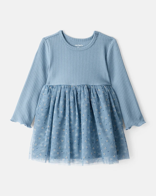 Toddler Girl Floral Print Long-Sleeve Dress - Blue