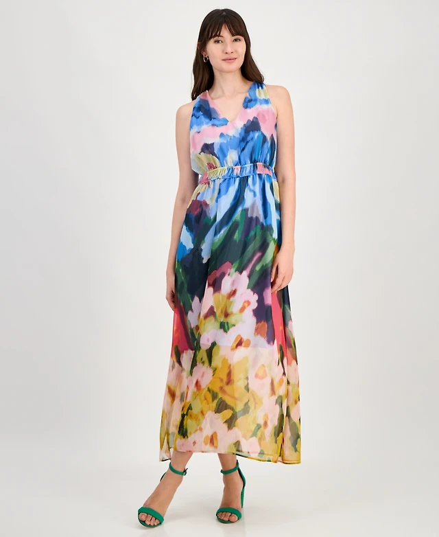 Lucky Brand Women's Embroidered Floral Sleeveless Maxi Dress